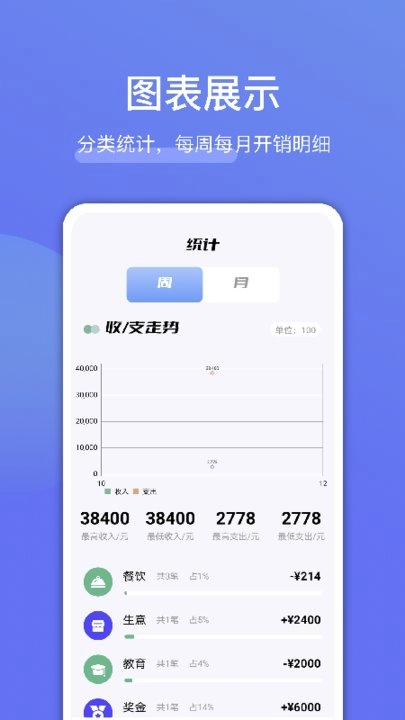 提供直观的图表展示功能,让收支数据的查看更简洁便捷,信息呈现清晰直观。