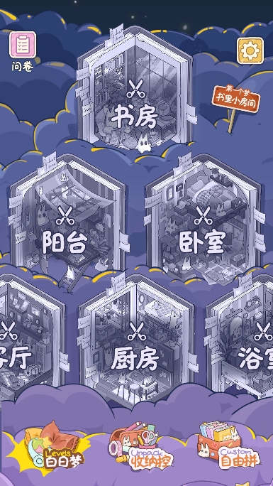 白日梦想屋游戏免费【03.25更新】是一款由盏灯工作室出品的温馨治愈的休闲益智游戏,玩家进入游戏后,先从卧室、书房、客厅、浴室、厨房、阳台等房间中选择要打造的场景,这些房间组成了兔兔们的三层小别墅。白日梦想家免费游戏玩法在于你需要将所有的物品根据不同的地方进行收纳,玩家还可以调整家具的大小、颜色和位置,打造完全符合自己想象的空间。