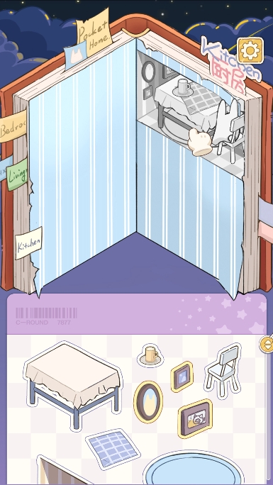 场景选择与搭建:选用心仪的手绘风格贴纸来搭建房间布局、装饰家具,可按照关卡要求完成指定任务,也能自由发挥创作。