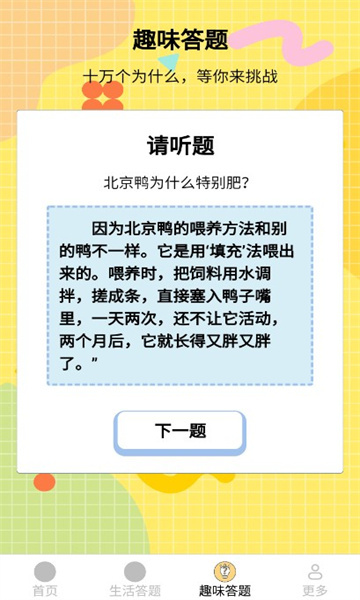 给大家分享小满答题这款软件,它能帮你学到课本之外的知识,题目包含生活常识、益智趣味和百科知识三大类,你可以在答题的过程中学习知识,轻松拓宽自己的知识面。