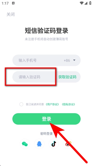 4、在输入框中填写验证码,勾选相关协议后,点击登录按钮,即可完成登录流程。