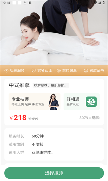 好相遇是一款专注于同城上门服务的手机按摩应用,平台汇聚了众多专业按摩师为用户提供服务,涵盖多种按摩项目可供挑选。此外,软件界面设计简洁明了,操作便捷,有需求的用户不妨来体验一番!