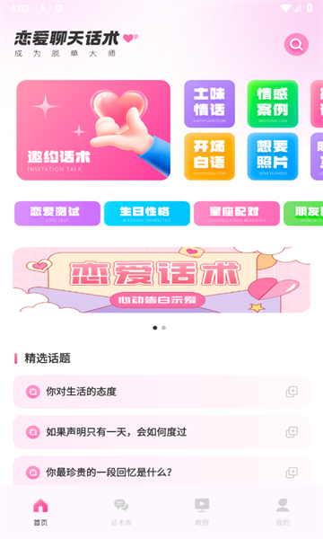 这款软件配备了丰富的恋爱聊天话术资源库,里面收录了适用于不同场景和情境的对话范例。