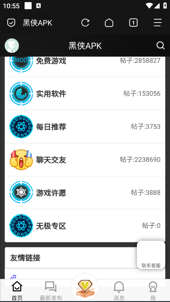 黑侠apk ,集软件游戏和交流分享为一体,大家可以在上面查找自己需要的资源,还可以看到其他用户发布的帖子内容,都是当下最新的,用户也可以自己发布帖子,获取更多的资源,涵盖各个方面,还有超级多的游戏福利资源免费获取。