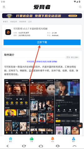 爱网者手机版配备了诸多实用功能,用户能够借助手机不受时间地点限制地获取海量应用资源。