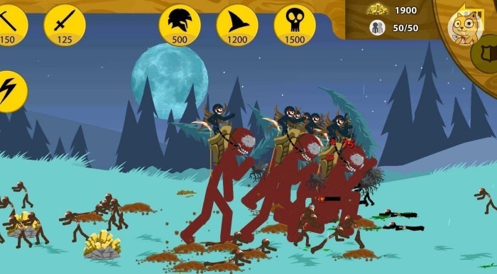 游戏中有矿工、剑士、弓箭手、长矛手、法师和巨人等兵种。