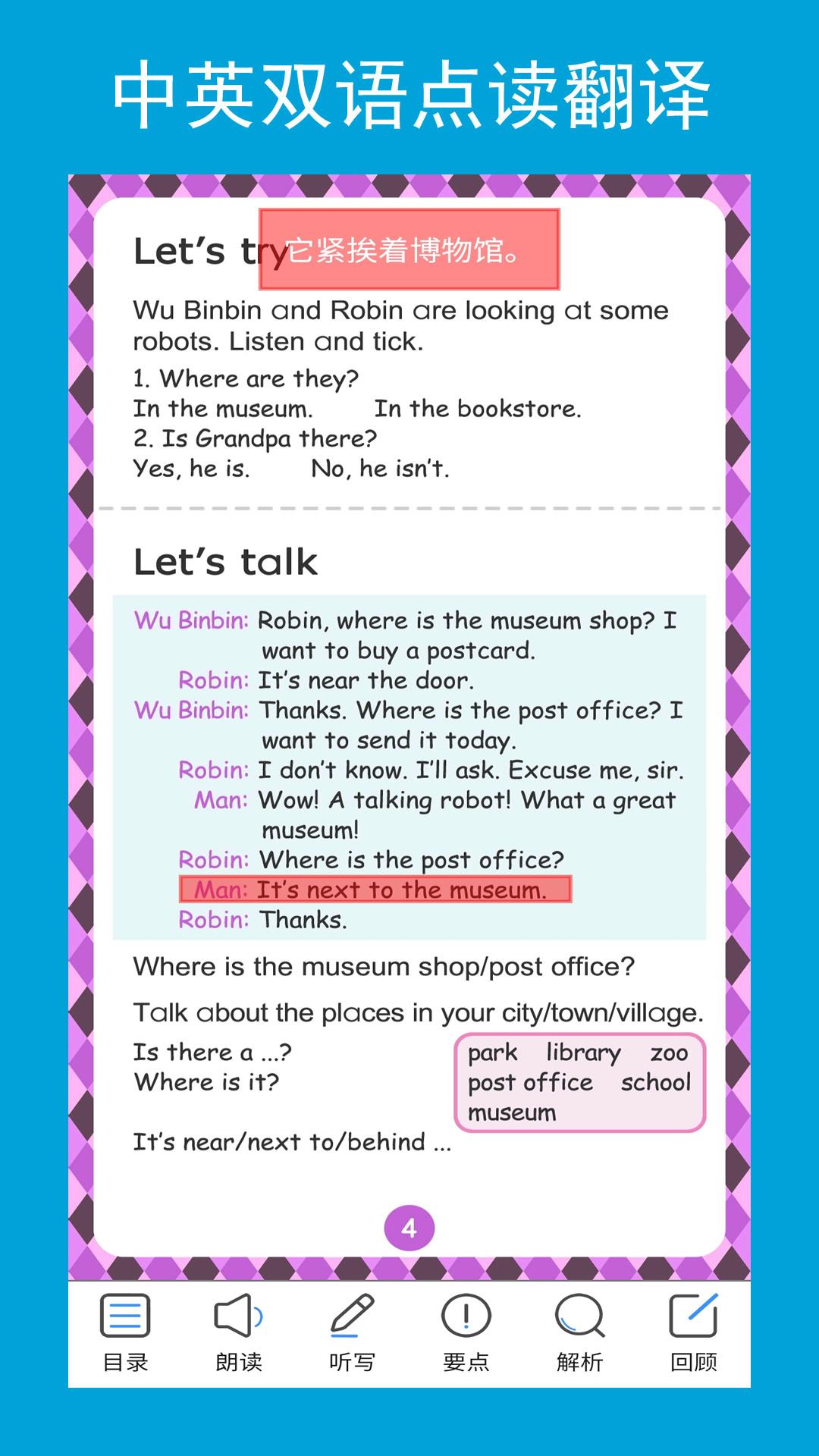 2. 为了助力学生更透彻地领会课文内容,软件配备了双语翻译功能,学生能够便捷地查看课文的中文释义,从而扫清学习上的障碍。