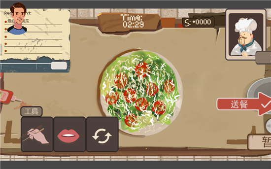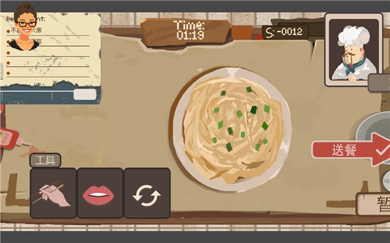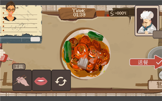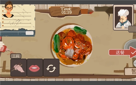 符合则点击 “送餐”,不符合则点击 “更换”。玩家要在规定时间内完成所有菜品的品尝以查看得分。