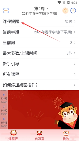 3、点击选择课程提醒