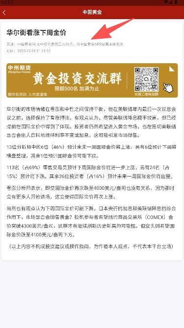 2、浏览点击目标“华尔街看涨下周金价”。