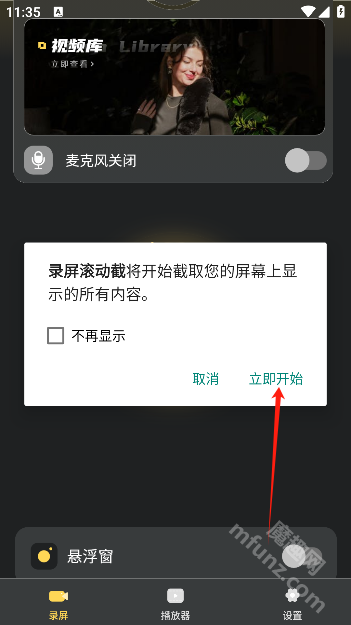 1.安装并打开录屏滚动截屏软件,点击开始录制