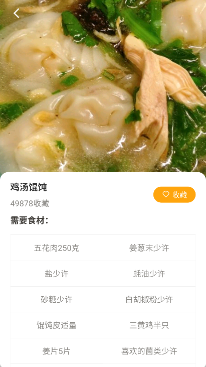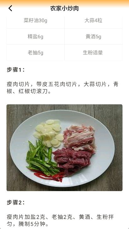 3、随意点击一项菜品,我们将看到详细的食材清单和具体操作步骤。