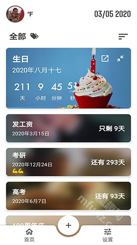 1、涵盖中考、高考等各类考试的倒计时,以及生日、纪念日的提醒功能。