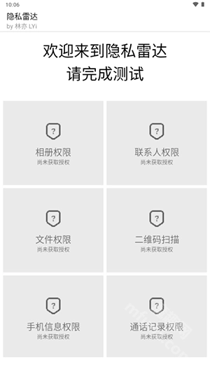 2、隐私雷达借助模拟真实手机应用的方式,向用户请求各类访问权限与功能调用权限。