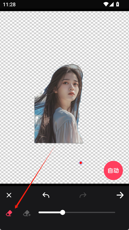 在选择照片后进入抠图界面,点击“自动”按钮,系统会自动识别并抠出照片中的主体。