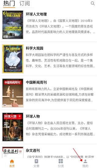 1、打开杂志天下,在首页中点击“我的”页面。