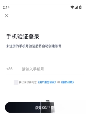 3、直接输入手机号,获取并填写验证码,即可完成登录;若该手机号未注册过,系统会自动将其注册为新账号。