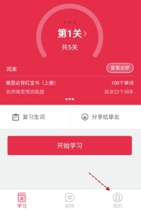 1、进入软件主页面,我们将看到各个关卡及所需学习的单词。
