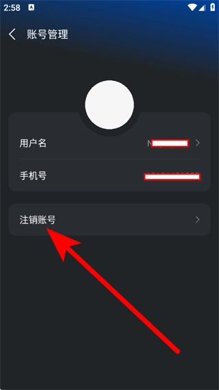 3、进入账号管理页面后,找到并点击“注销账号”选项,即可跳转至注销用户页面。