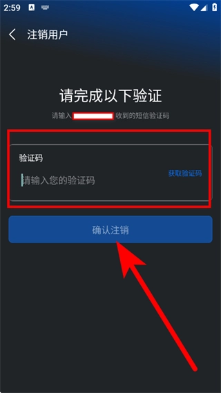 4、进入用户注销页面后,输入验证码并点击确认注销按钮,即可完成账号注销操作。