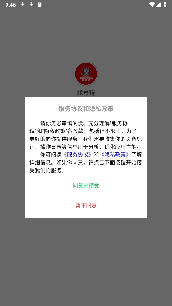 1、在本站安装找号玩,同意相关的政策与协议之后打开。