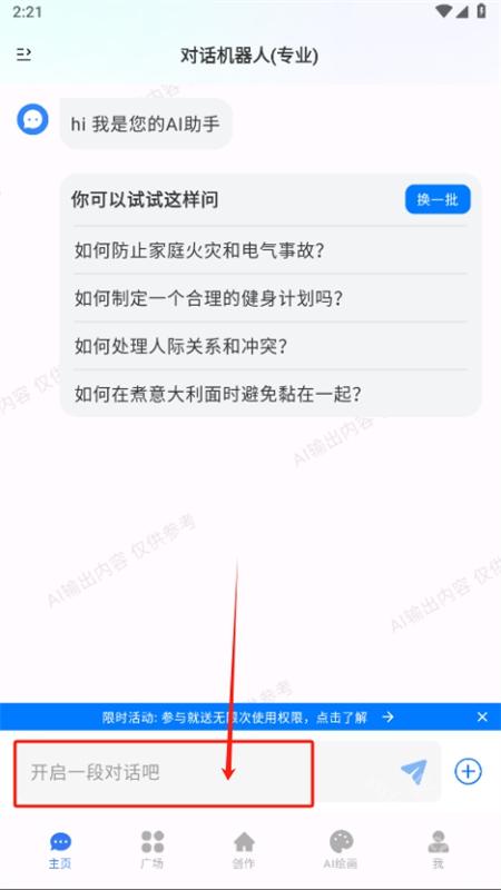 1、先安装好我们的AI软件。2、打开软件进入主页后,在对话框里输入想要发送的内容并提交就可以了。