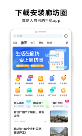 廊坊圈是北京爱皮皮科技有限公司专为廊坊市民打造的生活服务,用户可以随时随地了解廊坊的最新动态和热点事件,爆料、民生消息,廊坊大小事一手掌握,还可以发照片、晒生活、找对象,淘二手、找工作,租房子,满足一切生活所需。