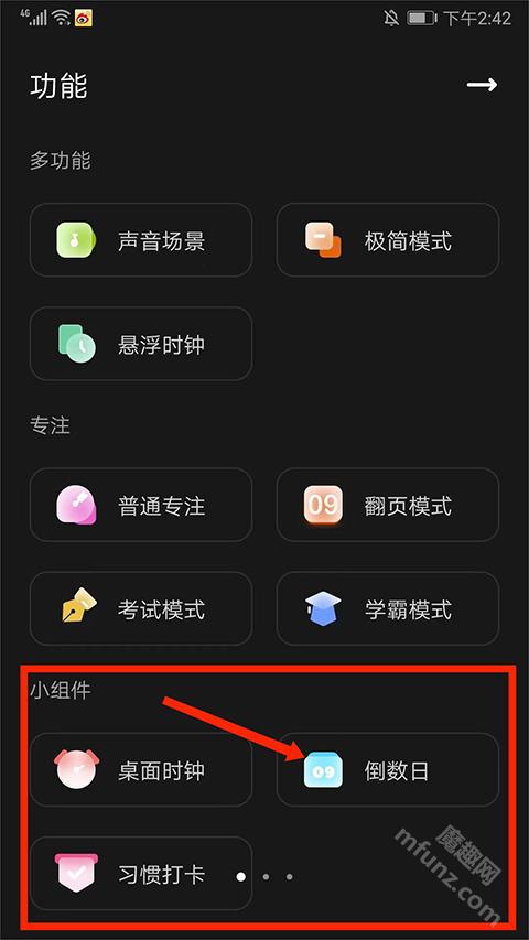 1、全屏翻页时钟:极简界面,专注学习工作。