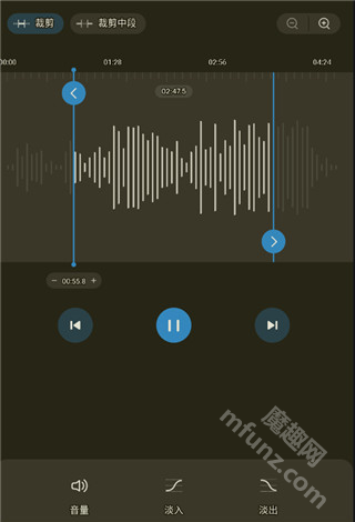 6、高级编辑功能:可实现淡入淡出效果设置、音量调节等操作。