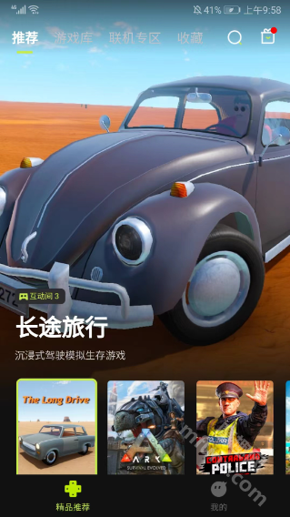 1、打开闪玩云游,进入主界面,包括推荐、游戏库、联机专区和收藏频道,推荐频道展示系统推荐游戏;