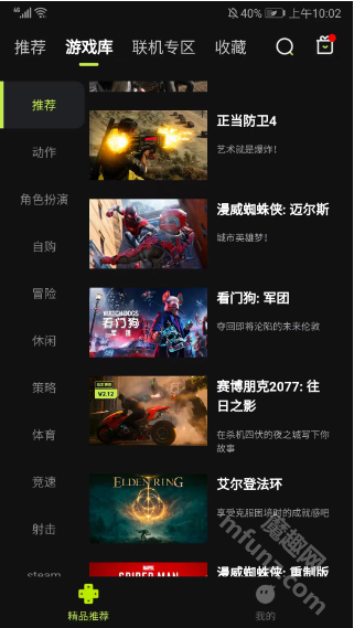 2、游戏库提供多种类型,如动作、角色扮演、冒险、休闲等,以【正当防卫4】为例;