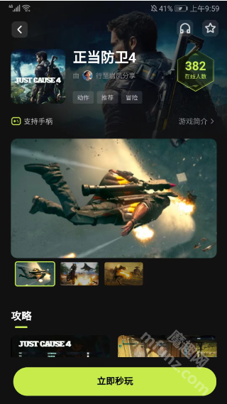 3、进入游戏详情页,查看介绍和攻略,点击【立即秒玩】即可开始;