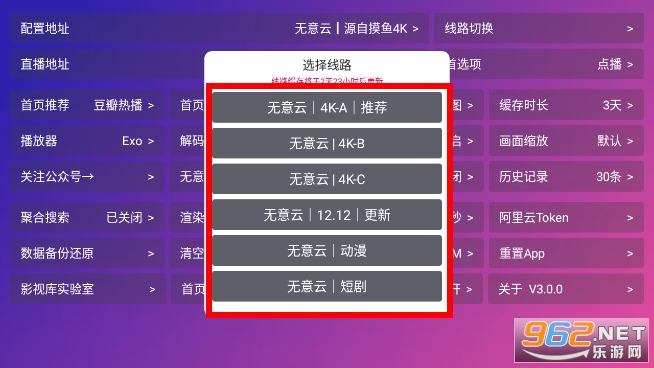 要是视频加载失败,或者播放过程中出现卡顿的情况,大家可以更换下方的专线,也可以返回上级界面进行切换。
