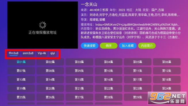 当我们打开一部自己想看的影视作品时,会进入到类似下图呈现的界面,这里罗列着不同线路提供的各类资源,我们可以随意挑选其中一个。
