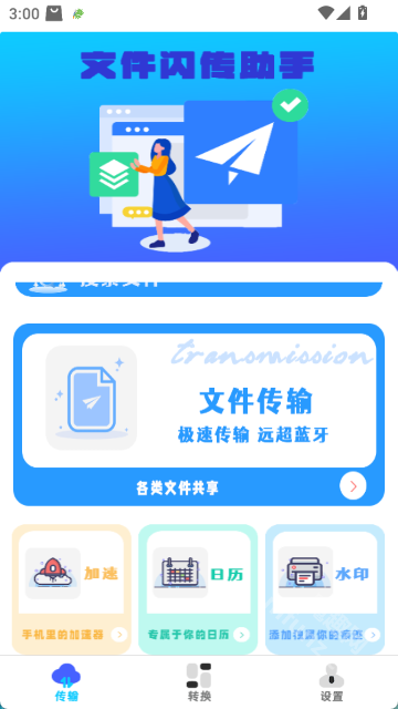 文件闪传助手是一款兼具文件传输与文档格式转换功能的手机应用,可实现pdf转word、pdf转图片、pdf转文字、word转pdf等格式转换操作,文件传输方面支持本地文件的局域网共享,还了日历等实用小工具;通过几个简单步骤,就能轻松将手机数据互传到新设备,操作便捷高效。