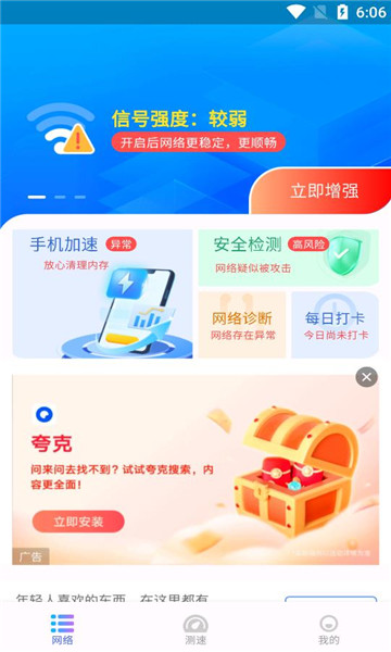 WiFi极连钥匙是一款手机WiFi管理应用,它能帮助用户快速连接周边网速最优的WiFi,同时保障连接环境的安全稳定;通过一键检测WiFi信号,提升上网体验;清理手机缓存垃圾,优化设备运行速度;欢迎大家前来体验。