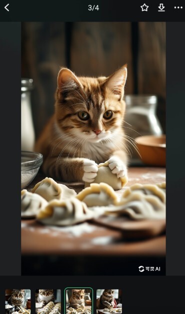 1、在AI图片创作描述框中输入提示词,例如:“一只猫咪在厨房包饺子”。