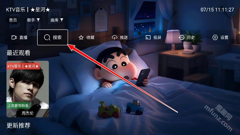 聚合全网音乐平台资源,覆盖流行、摇滚、古典等全风格曲库,支持歌手/歌曲/MV一键搜索并大屏播放。