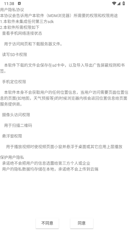 1、在本站安装MDM浏览器之后打开,查看并同意相关的政策与协议。