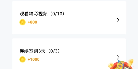 1)观看精彩视频,每累计观看10个视频可获得800金币