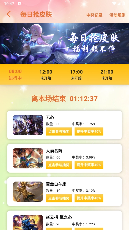 4、每日限时抢皮肤活动
