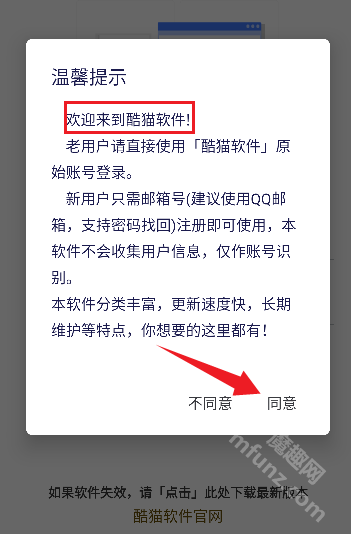 1、打开酷猫软件,按提示注册登录,无需验证。