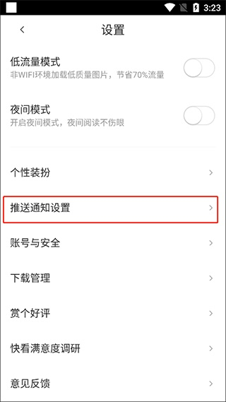 4、进入设置,点击【推送通知设置】选项。