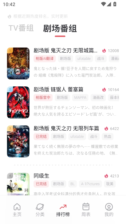 2、设有4K专属专区与周播放排行榜,每日实时更新动漫内容,支持精准搜索和条件筛选找番。