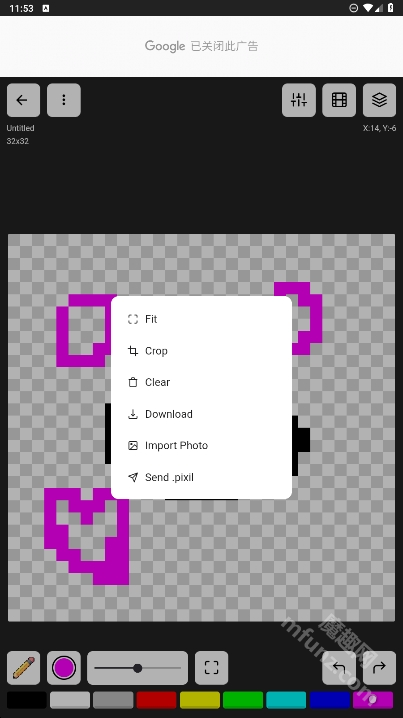 4、导出:作品创作完成后,用户既可以将其保存为应用程序默认的.pix格式,用于后续继续编辑;也能选择导出为PNG或GIF格式,便于分享与使用。