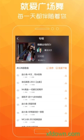 广场舞歌曲是一款专为广场舞音乐设计的手机音乐播放软件,里面收录了不少当下热门的广场舞曲目,特别方便爱跳广场舞的朋友们使用,只需一键点击就能播放,感兴趣的话就到旋风软件园来体验吧!