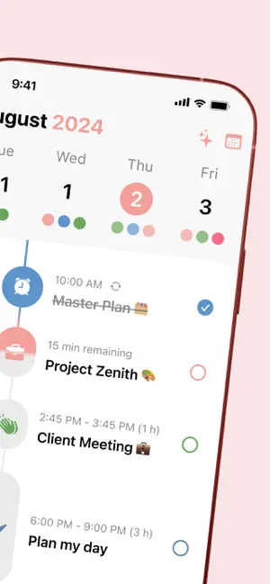 全面的日程规划功能:Structured把日历与待办事项清单融合在同一个时间轴里,用户能便捷查看当日、当周及当月的日程和任务,清楚掌握自身的安排与时间分配情况。