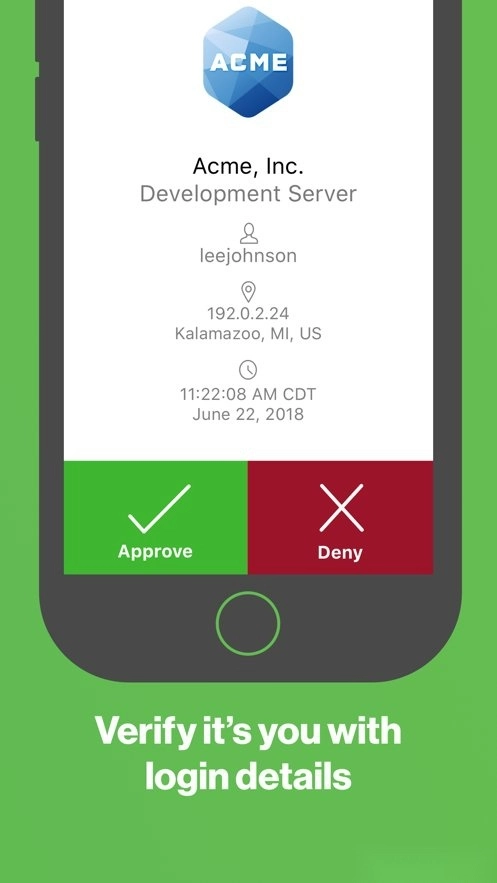 使用DuoPush可以快速、轻松地安全登录,DuoMobile支持更安全的两因素身份验证方法。借助Duo的一键式用户友好界面,用户可以在访问应用程序之前通过批准推送通知来快速验证其身份。拒绝不熟悉的登录尝试同样快速,因此用户可以轻松阻止欺诈性尝试访问公司数据。