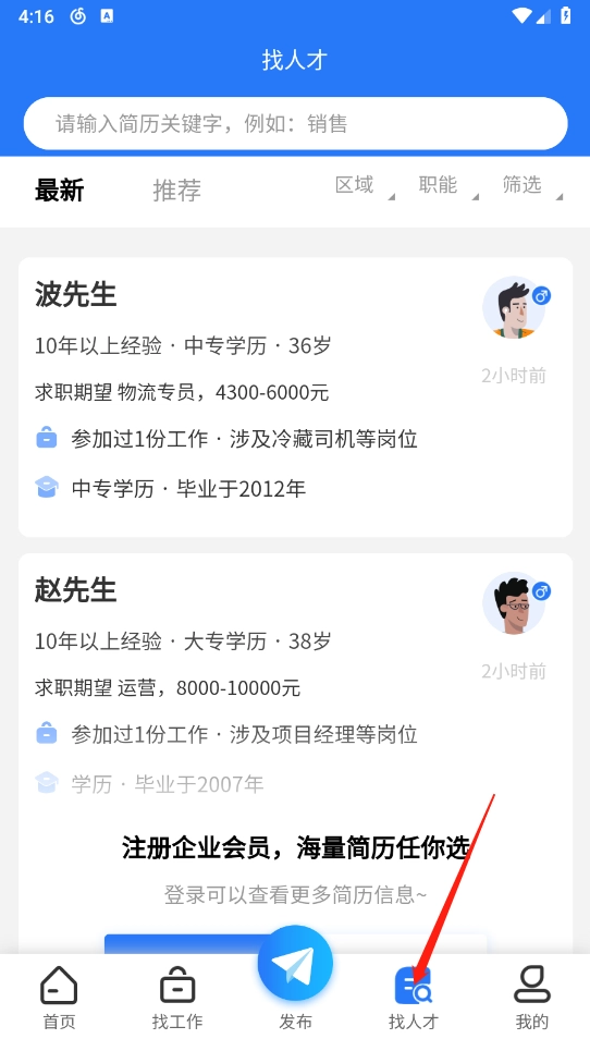 4、招聘效率提升:支持企业负责人与求职者直接沟通,助力快速完成人才招募。