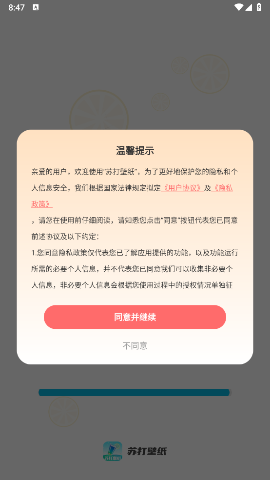 1、安装苏打壁纸,同意相关的政策与协议之后打开。